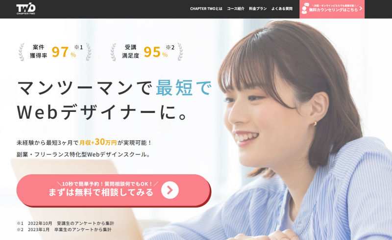 また、受講者に向けた案件紹介や案件獲得サポートも超充実で、受講後に学んだスキルをすぐに活かしつつ実績を積んでいけますよ。