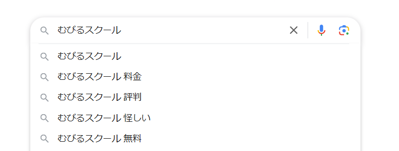 Googleでむびるスクールについて検索しようとすると、上記画像のように「怪しい」という表示が。