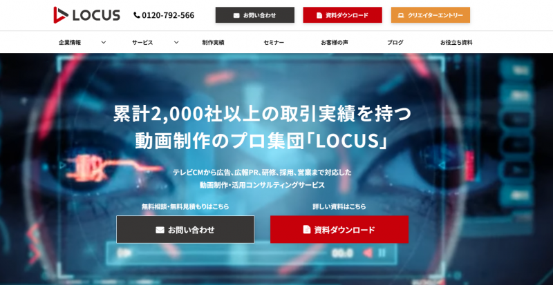| 実績 | 有名企業から中小企業までジャンルを問わずテレビCMやプロモーション動画、紹介動画、採用動画、HowTo動画など8,000件以上の制作実績 |