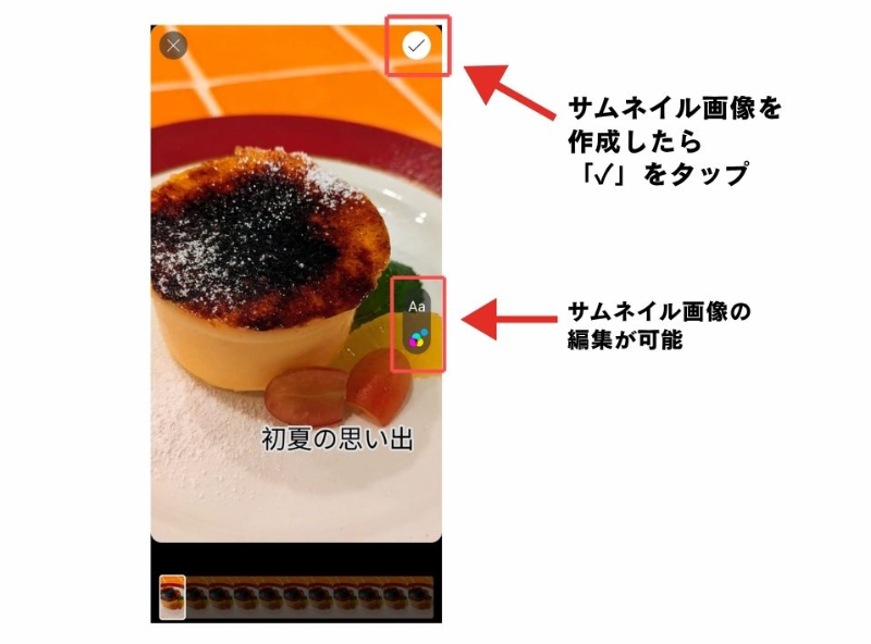 ⑤サムネイルを作成し右上の「✓」をタップ