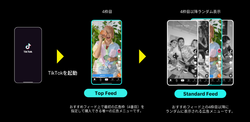 大きな特徴は、TikTokの機械学習が「このユーザーに広告を配信すれば成果が出る」と判断したユーザーに優先的に広告を表示する点です。