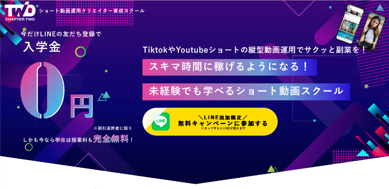 - 1.3 ショート動画におすすめの動画制作スクール ③Chapter Two
