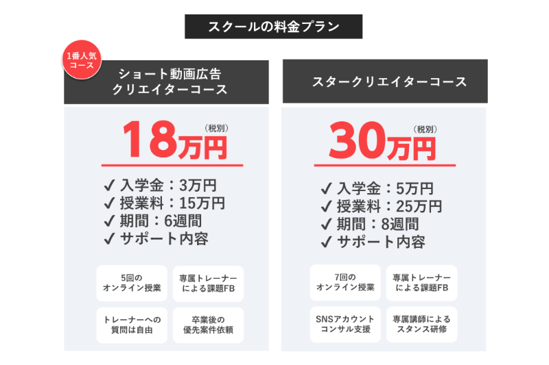 | 料金(税込) | ショート動画コース:275,000円(税込) |