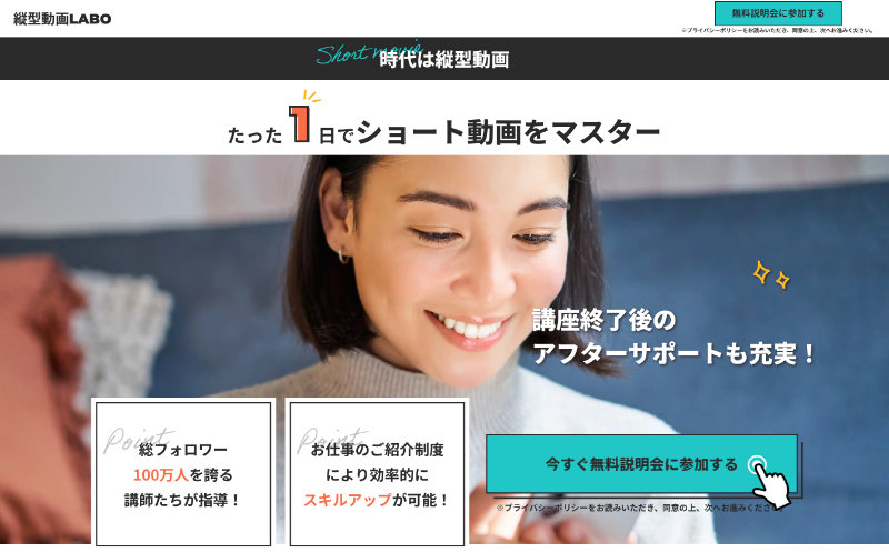 - 1.8 ショート動画におすすめの動画制作スクール ⑧縦型動画LABO