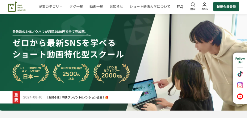 - 1.5 ショート動画におすすめの動画制作スクール ⑤ショート動画大学